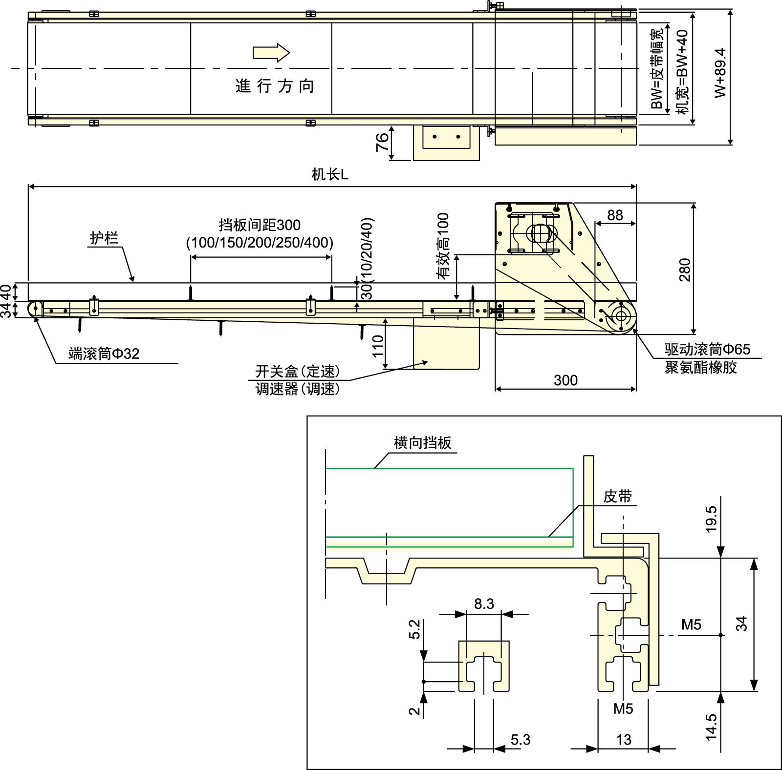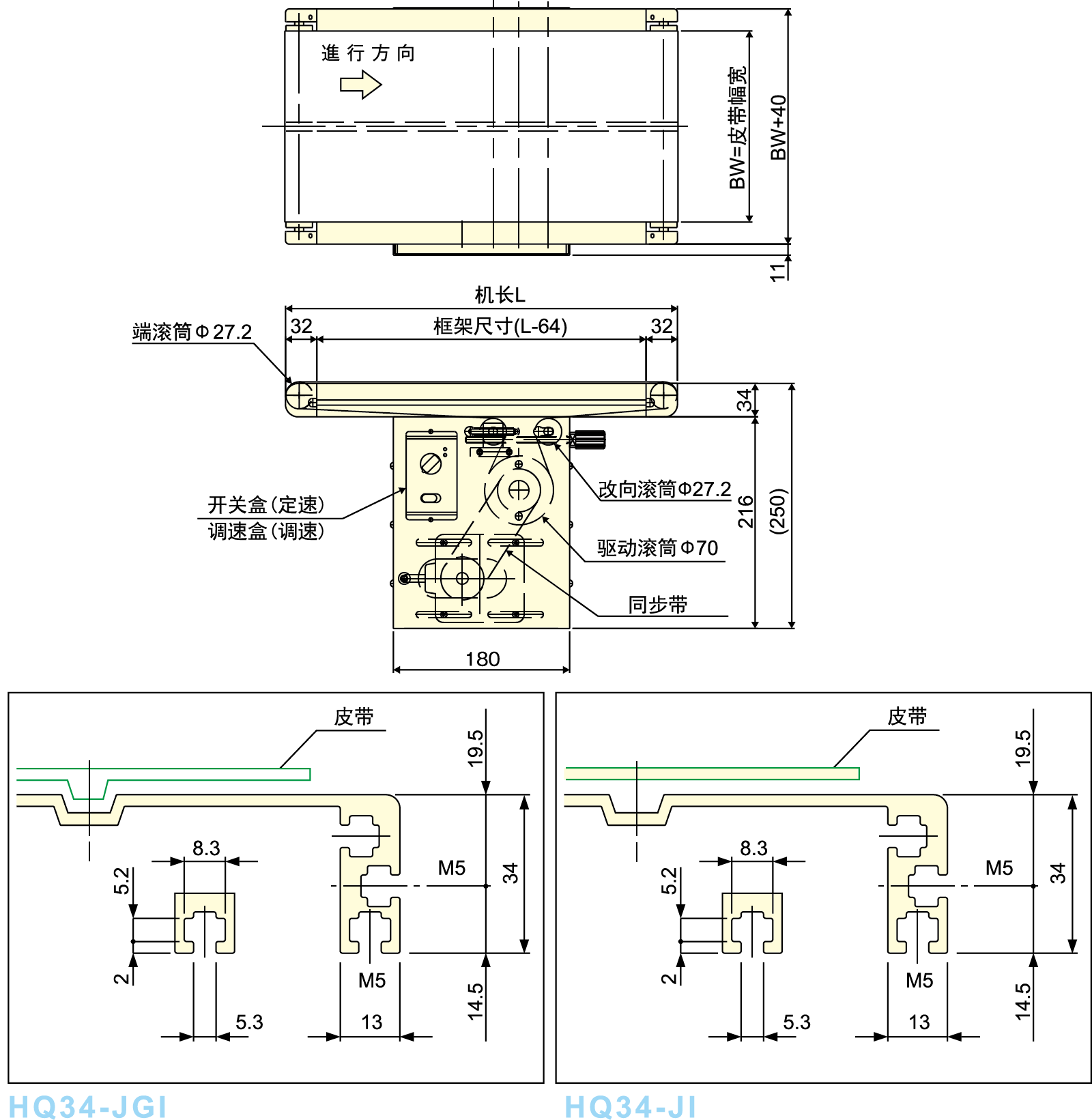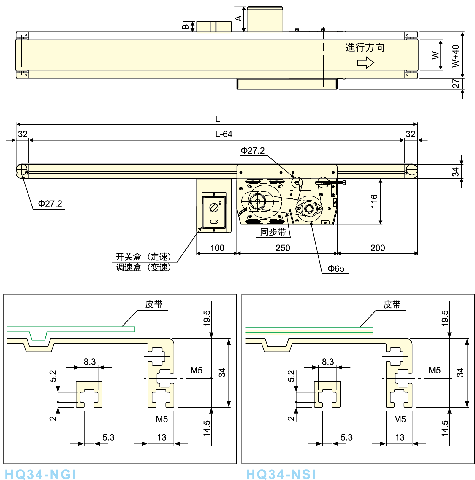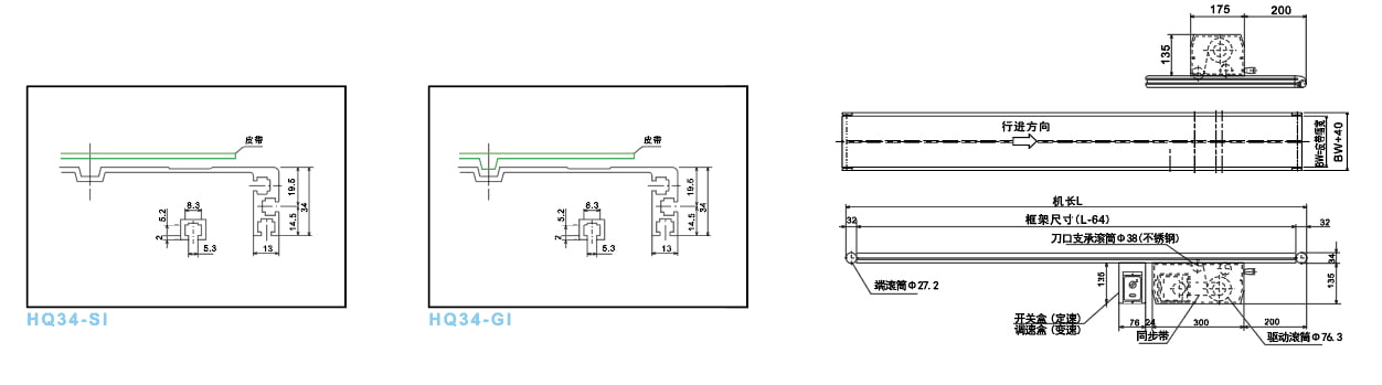 ● Is é seo an cineál caighdeánach iompair crios 34mm, aistrítear an t -ionad tiomána trí chrios uainiúcháin.
