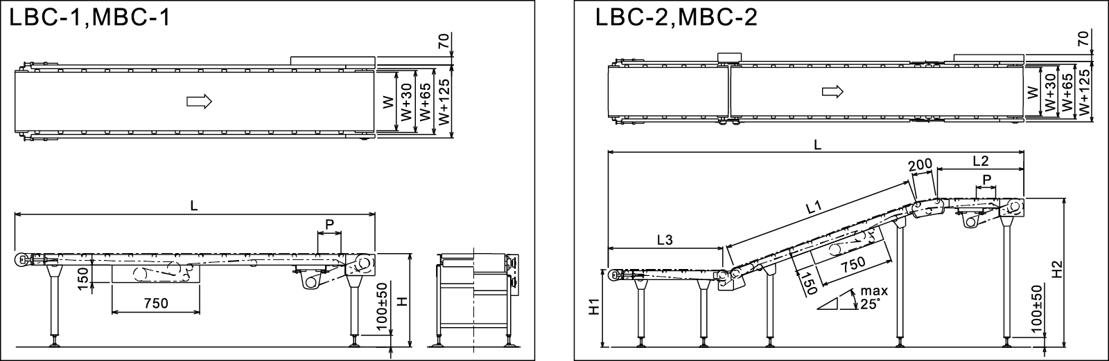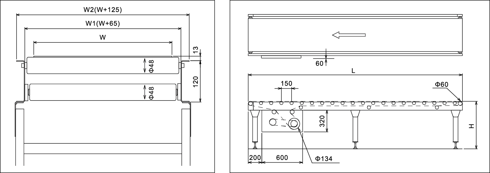 | Ar fad | L (mm) | 1200 ~ 20000 | 4000 ~ 15000 | 1200 ~ 25000 | 4000 ~ 20000 |