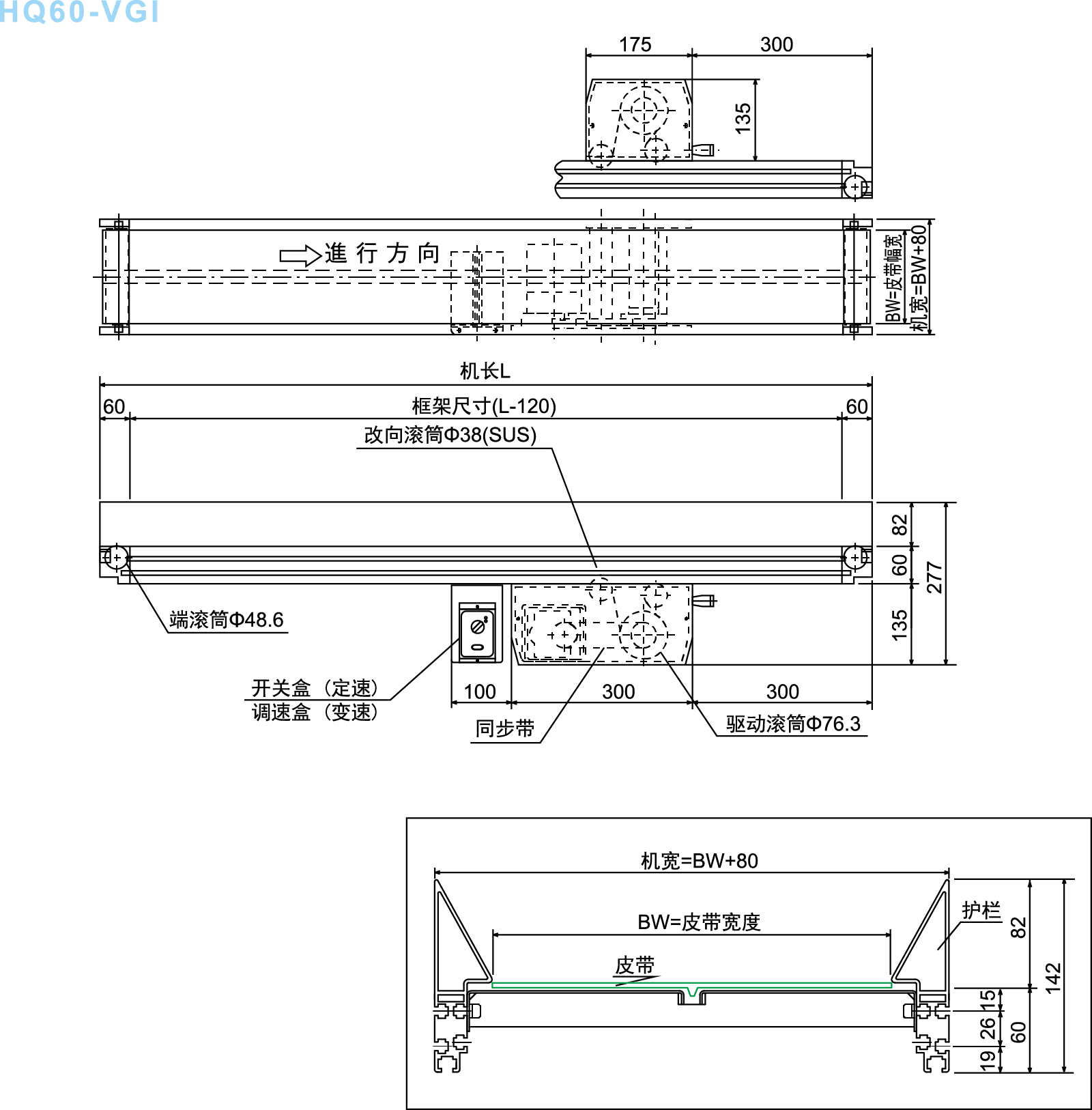 Ríomh luais an luais sheasta: Luas rothlaithe 1500/1800rpm (50/60Hz), sorcóir tiomána ∅76.3, éifeachtúlacht tiomána: 95%