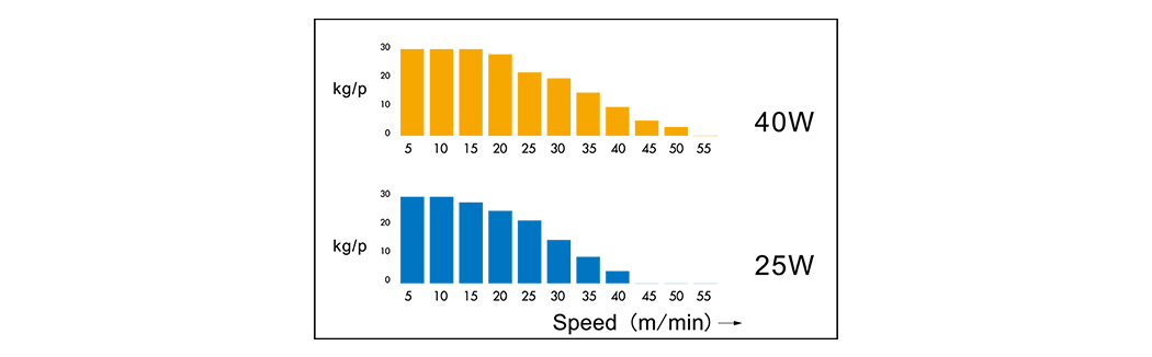 | 40W | 100 (82) | 75 (57) | 50 (32) | - |
