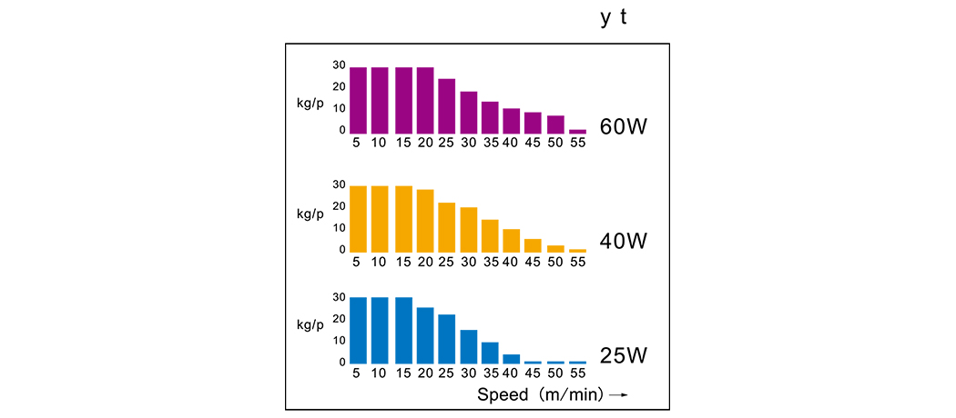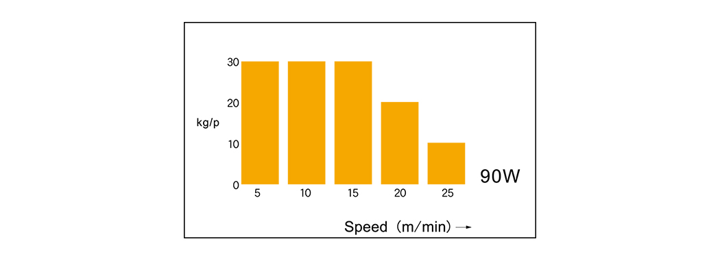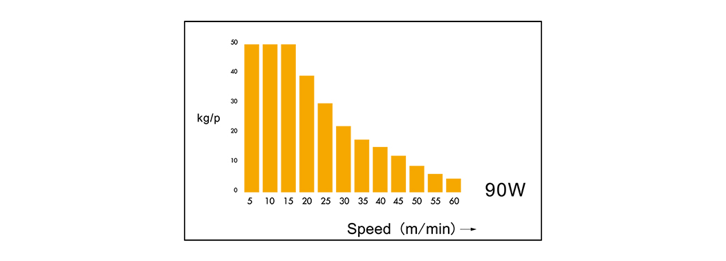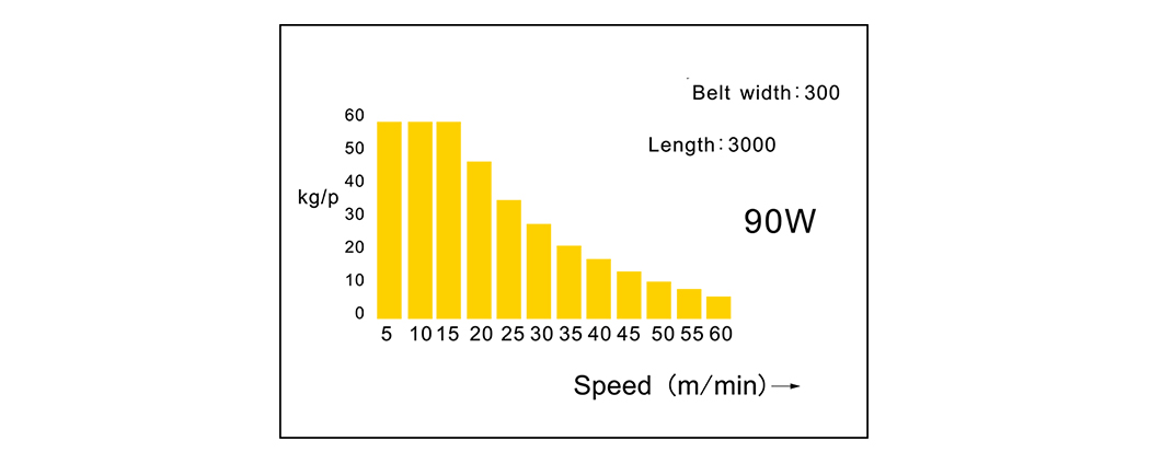 Ríomh luais luas athraitheach: luas rothlaithe 2000rpm (50; 60Hz), sorcóir tiomána ∅76.3, éifeachtúlacht tiomána: 95%