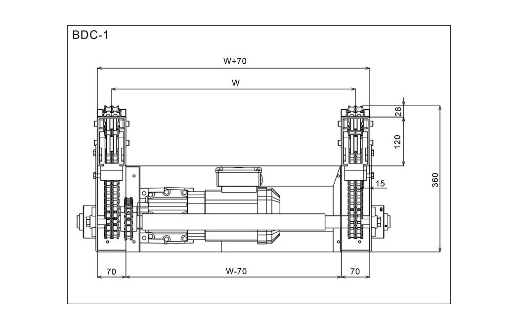 Úsáidtear an t -iompróir slabhra go príomha chun pailléid agus totes móra a iompar. Úsáideann an t-iompróir slabhra caighdeánach ó Wuxi Huiqian slabhra sorcóir caighdeánach dúbailte 10B-2, atá oiriúnach le haghaidh ualaí troma ó 500 go 3000 kg.