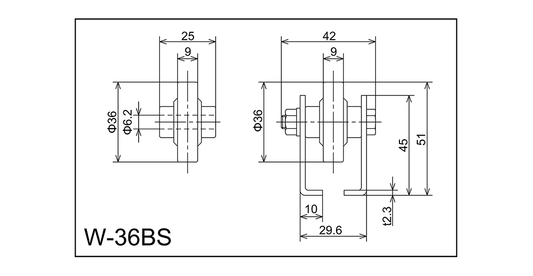 | W-36BS | 36x9x6.2x25 | M6x38l | 45x29.6x10x42x2.3 | 51 | 1000 · 2000 · 3000 | 50 · 75 · 100 · 150 | 40 | A |