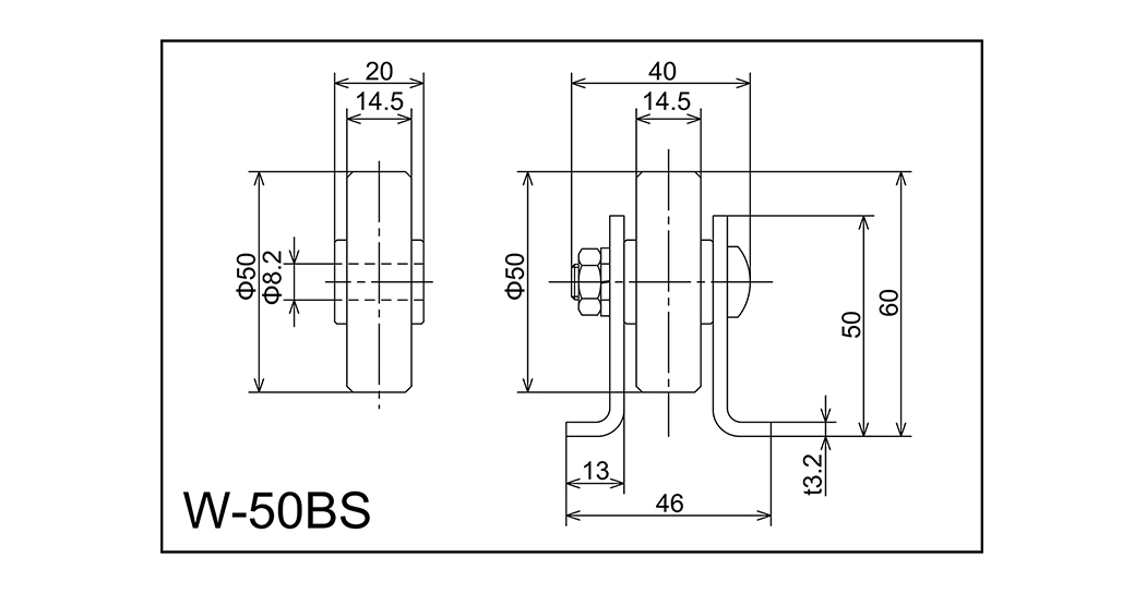 | W-50BS | 50x14.5x8.2x20 | M8x35l | 50x46x13x40x3.2 | 60 | 1000 · 2000 · 3000 | 75 · 100 · 150 | 80 | C |