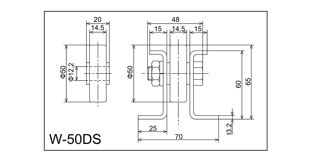 | W-50ds | 50x14.5x12.2x20 | M12x40L | 60x70x25x48x3.2 | 65 | 1000 · 2000 · 3000 | 75 · 100 · 150 · 200 | 100 | D |