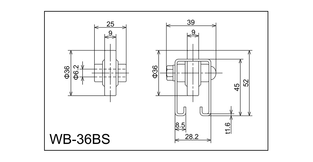 | WB-36BS | 36x9x6.2x25 | M6x35l | 45x28.2x8.5x39x1.6 | 52 | 1000 · 2000 · 3000 | 50 · 75 · 100 | 40 | O3 |