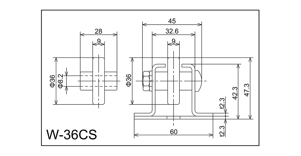 | W-36CS | 36x9x8.2x28 | M8x40L | 42.3x60x32.6x45x2.3 | 47.3 | 1000 · 2000 · 3000 | 50 · 75 · 100 · 150 | 40 | J |
