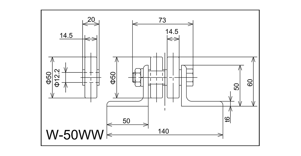 | W-50WW | 50x14.5x12.2x20 | M12X65L | 50x140x50x73x6 | 60 | 1000 · 2000 · 3000 | 40 · 50 · 75 | 100 | M |