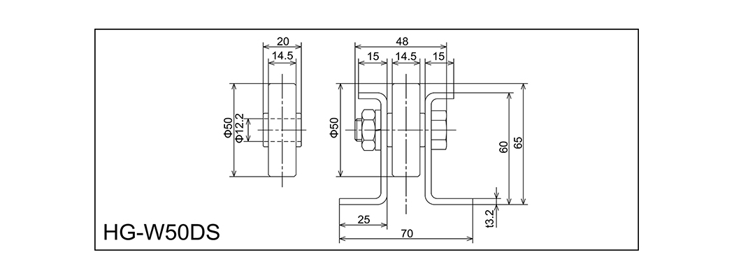 | HG-W50DS | 50x14.5x12.2x20 | M12x40L | 60x70x25x48x3.2 | 65 | 1000 · 2000 · 3000 | 75 · 100 · 150 · 200 | 100 | D |